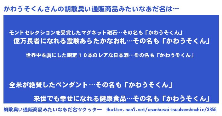| 意味不明あだ名 | 『住所不定無職かわうそくん(14歳)』 |