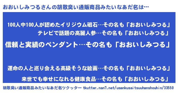| 欧米人風あだ名 | 『ウサインおおいしみつる』 |