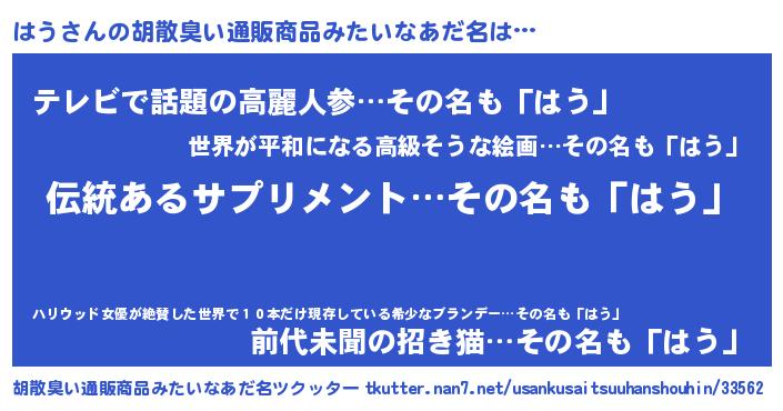 | 意味不明あだ名 | 『とにかく怪しいはう』『自称はう』 |