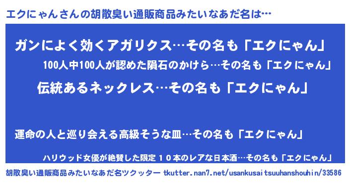 | 男性向けラノベタイトル風あだ名 | 『エクにゃんの嫁は女の子じゃないと思った?』 |