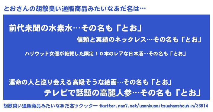 | ヘコむあだ名 | 『とお(爆)』『とおっちょ』『豆乳』 |
