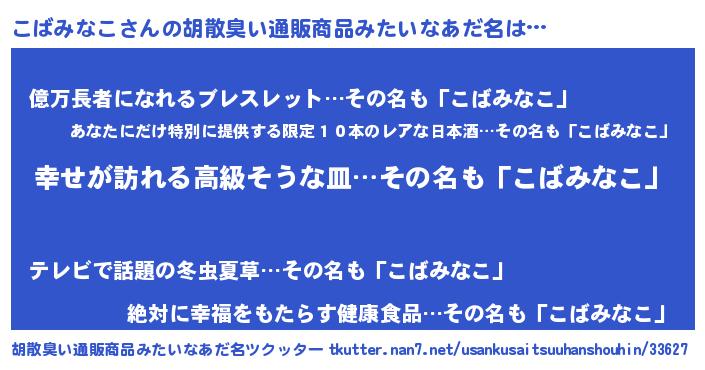 | 欧米人風あだ名 | 『こばみなこクリステル』 |