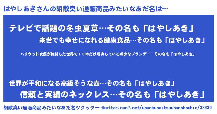| ヘコむあだ名 | 『はやっちょ』『はやしあき(遠い目)』 |