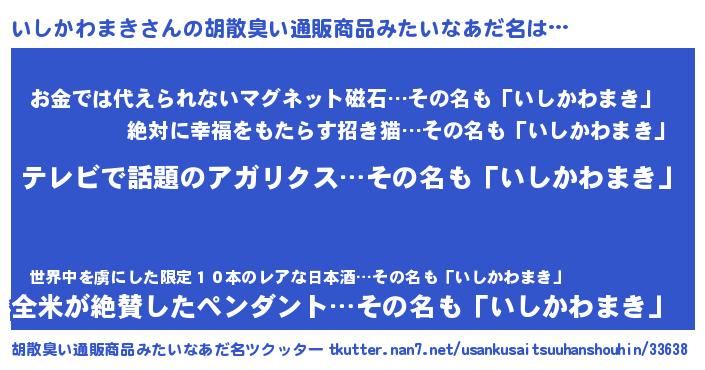 | 男性向けラノベタイトル風あだ名 | 『Re:いしかわまきから始める異世界生活』 |