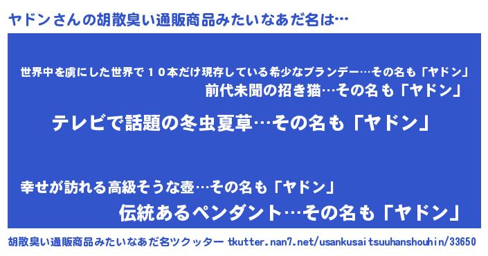 | 意味不明あだ名 | 『自称ヤドン』『住所不定無職ヤドン(56歳)』 |