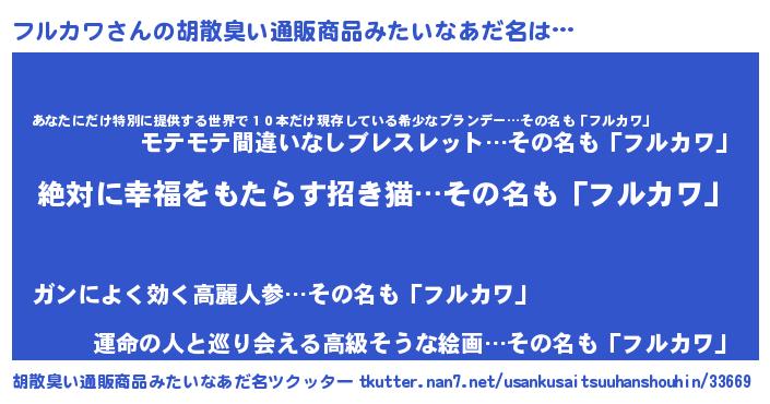 | ヘコむあだ名 | 『フルカワ(笑)』『レバニラ』 |