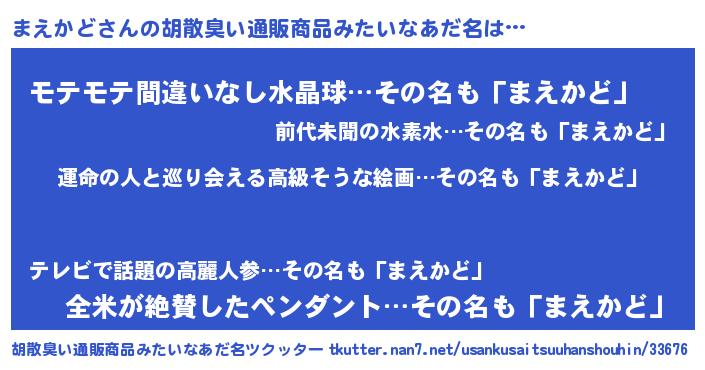 | ヘコむあだ名 | 『酢こんぶ』『まえっふぃ~』 |