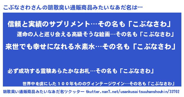| 意味不明あだ名 | 『永久保存こぶなさわ』 |