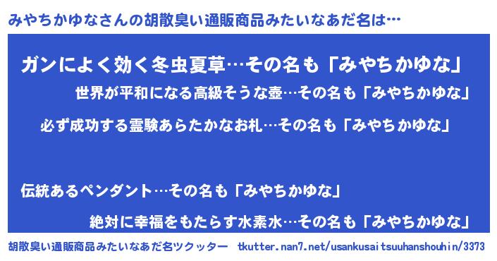 | ヘコむあだ名 | 『みやもー』『みやちかゆな(遠い目)』 |