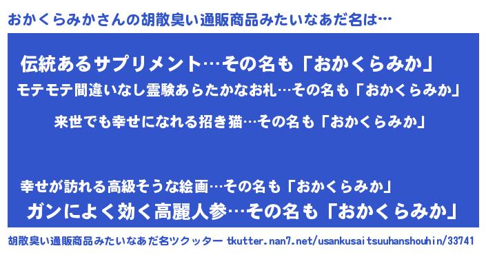 おかくらみかさんの胡散臭い通販商品みたいなあだ名をツクッター!