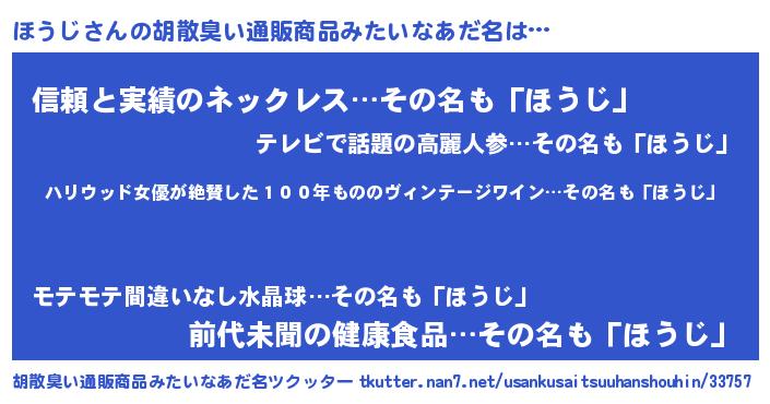 | 意味不明あだ名 | 『住所不定無職ほうじ(7歳)』『自称ほうじ』 |