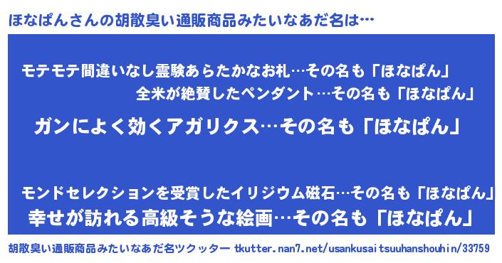 | ポケモン風あだ名 | 『ホナゴンZ』『ホナセウス』 |