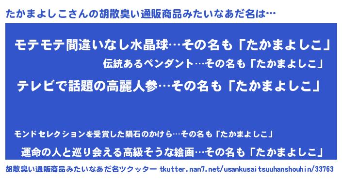 | 意味不明あだ名 | 『自称たかまよしこ』 |