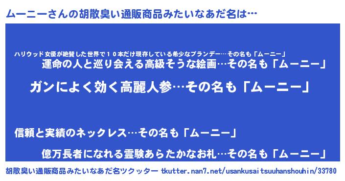 | 意味不明あだ名 | 『自称ムーニー』『ペロリンムーニー』 |