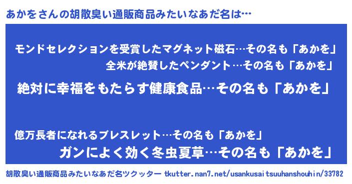 | 欧米人風あだ名 | 『トリンドルあかを』『ダニエルあかを』 |