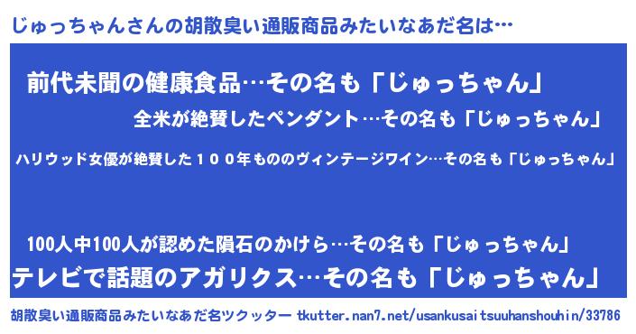 | 意味不明あだ名 | 『住所不定無職じゅっちゃん(7歳)』 |