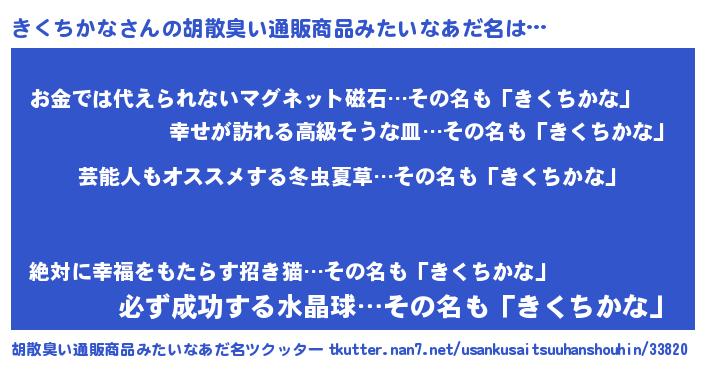 | ヘコむあだ名 | 『きくもー』『つくし』『きく太郎』 |