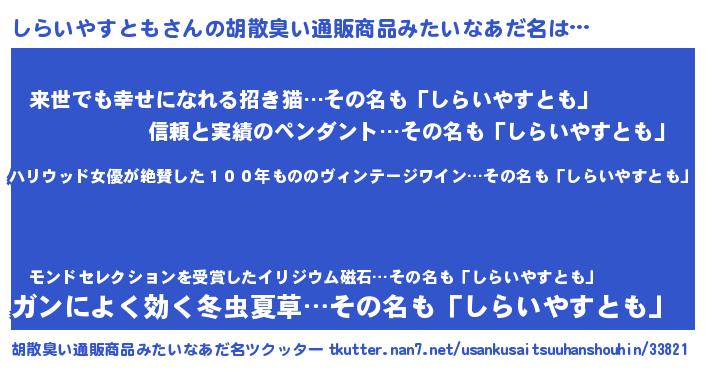 | 伝説のあだ名 | 『聞きしに勝る吟遊詩人しらいやすとも』 |