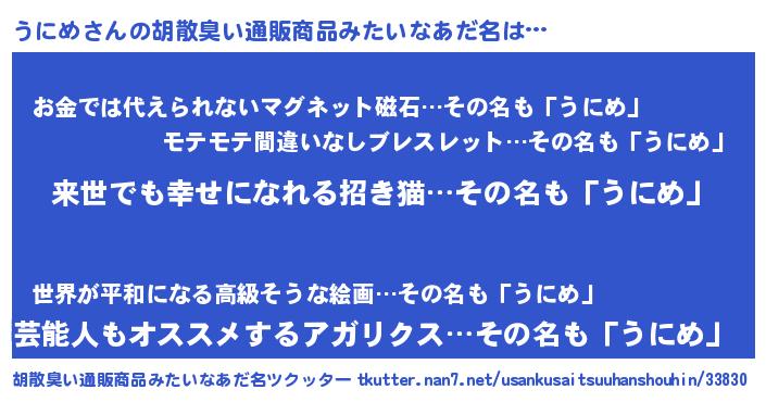 | ヘコむあだ名 | 『うにめ(笑)』『うにもー』『牛乳』 |