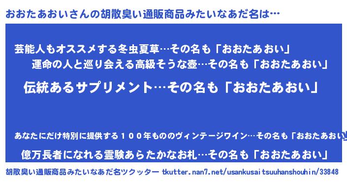 | 意味不明あだ名 | 『とにかく怪しいおおたあおい』 |