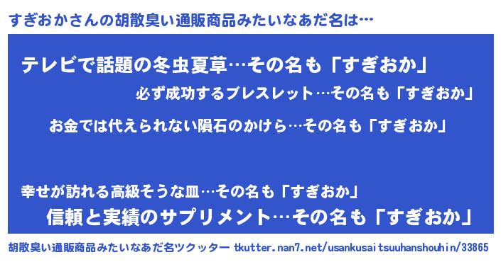 | ヒーロー風カッコイイあだ名 | 『愛の使者すぎおか』『最強戦士スギオカ』 |