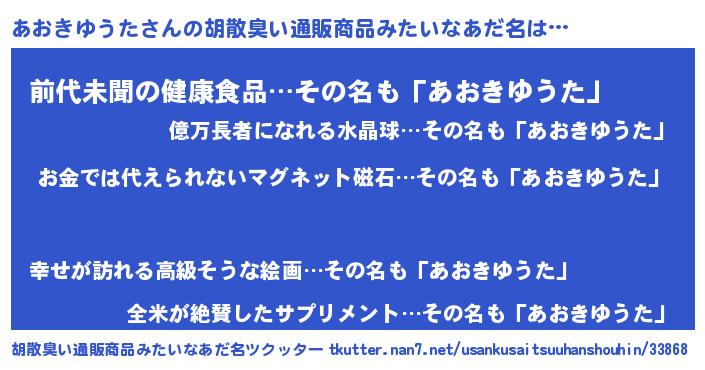 | 意味不明あだ名 | 『眠気覚ましガムあおきゆうた味』 |