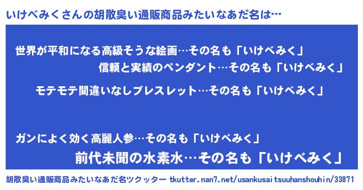 いけべみくさんの胡散臭い通販商品みたいなあだ名をツクッター!