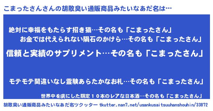 | 意味不明あだ名 | 『とにかく怪しいこまったさん』 |