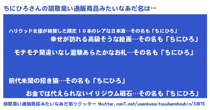 | 欧米人風あだ名 | 『マイケルちにひろ』『ダニエルちにひろ』 |