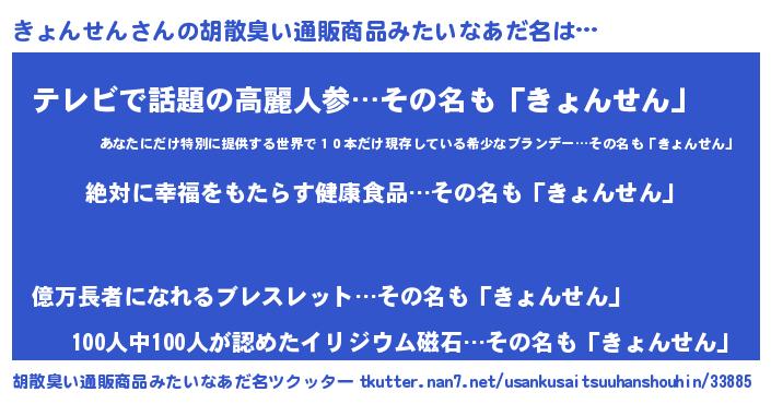 きょんせんさんの胡散臭い通販商品みたいなあだ名をツクッター!