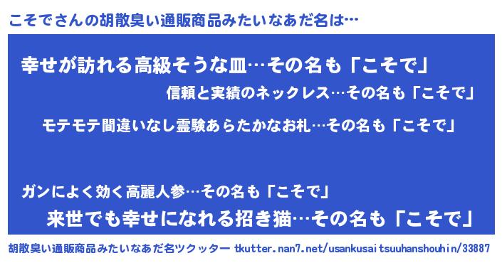 | ヒーロー風カッコイイあだ名 | 『スーパーコソデ』『ウルトラこそでマン』 |