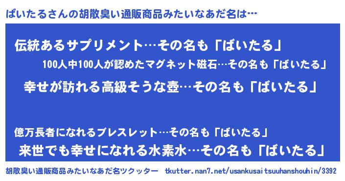 | 意味不明あだ名 | 『ばいたるフォーエバー』 |