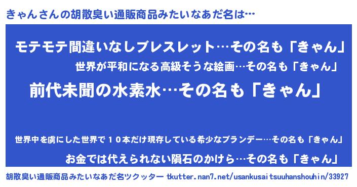| ヘコむあだ名 | 『きゃん(遠い目)』『きゃにゅー』 |