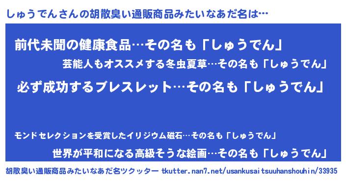 | ヘコむあだ名 | 『しゅふぇ~』『しゅうでん(爆)』 |