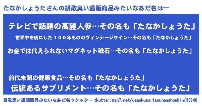 | ヘコむあだ名 | 『たなを』『たなかしょうた(笑)』 |