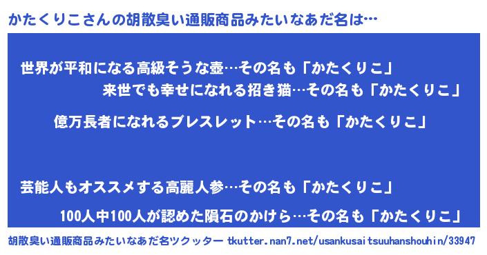 | ヘコむあだ名 | 『かたにー』『なまこ酢』『かたを』 |