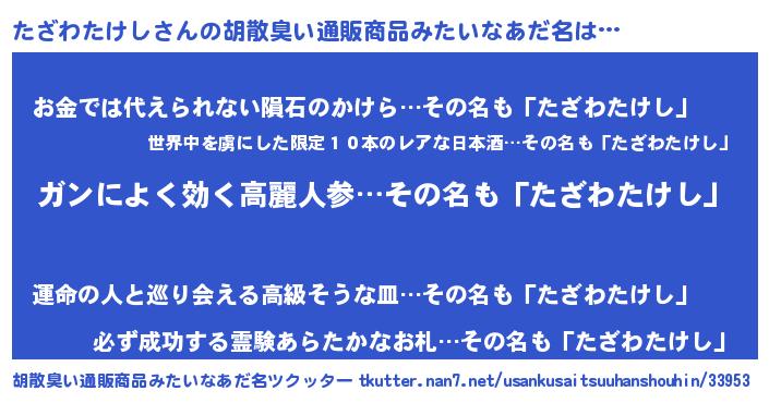 | 意味不明あだ名 | 『自称たざわたけし』 |