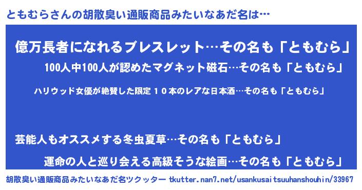 | ヘコむあだ名 | 『ともにゅー』『酢こんぶ』『ともお』 |