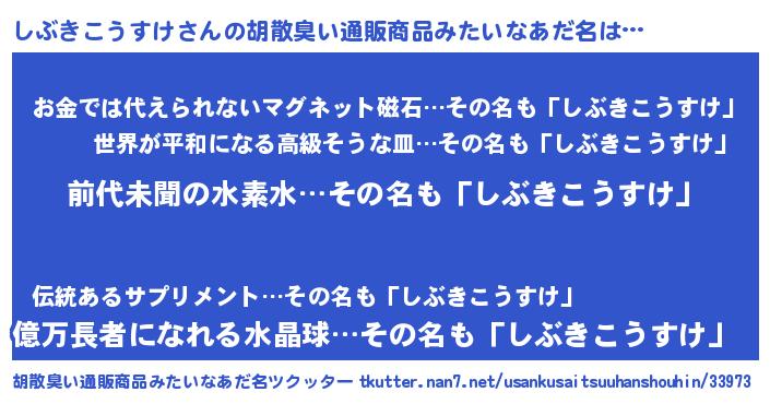 | ヘコむあだ名 | 『しぶきこうすけ(遠い目)』『しぶふぇ~』 |