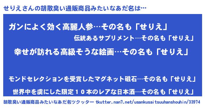 | 意味不明あだ名 | 『せりえフォーエバー』『自称せりえ』 |