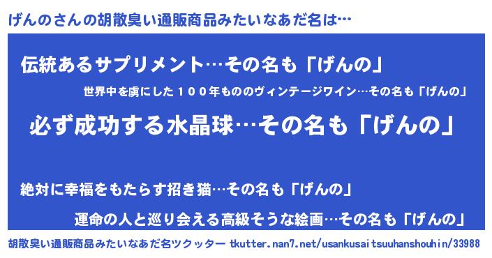 | ヘコむあだ名 | 『げんにゅー』『げん太郎』 |