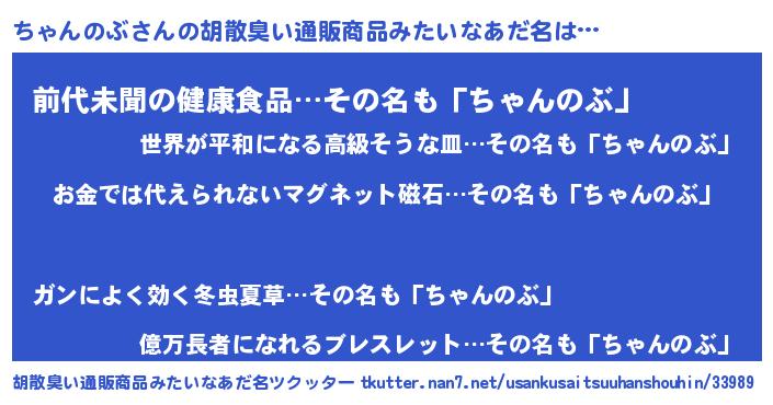 | 男性向けラノベタイトル風あだ名 | 『転生したらちゃんのぶだった件』 |