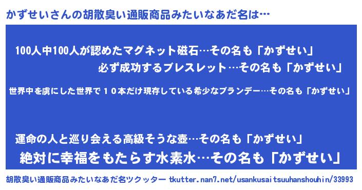 | 男性向けラノベタイトル風あだ名 | 『魔弾の王とかずせい』 |
