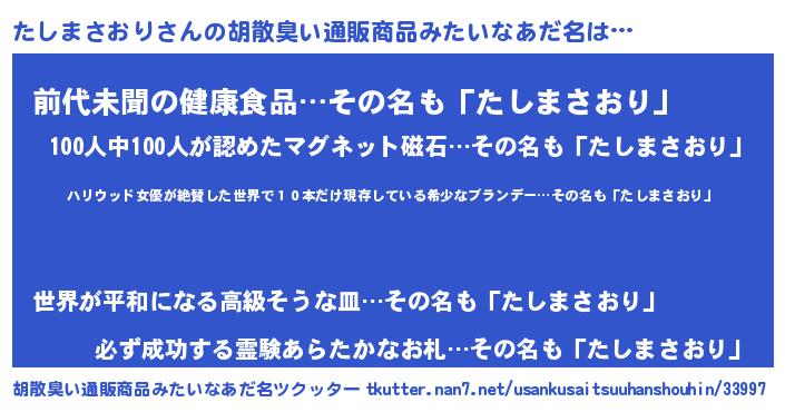| 意味不明あだ名 | 『住所不定無職たしまさおり(84歳)』 |