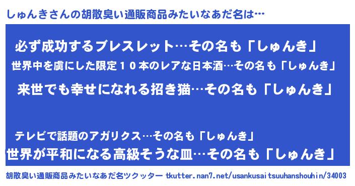 | 意味不明あだ名 | 『永久保存しゅんき』『ペロリンしゅんき』 |