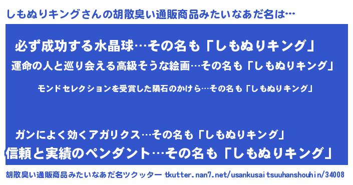 | 男性向けラノベタイトル風あだ名 | 『しもぬりキングに滅ぼされるだけの簡単なお仕事です』 |