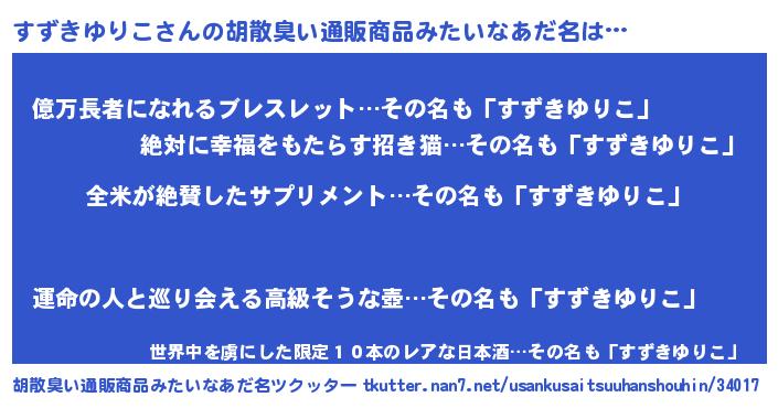 | 欧米人風あだ名 | 『ウサインすずきゆりこ』 |