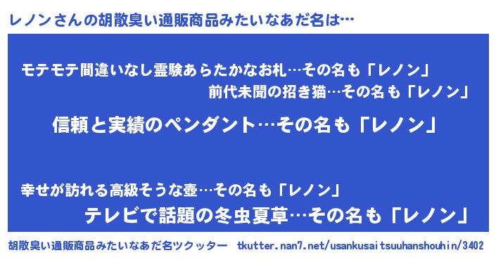 | 意味不明あだ名 | 『とにかく怪しいレノン』『自称レノン』 |