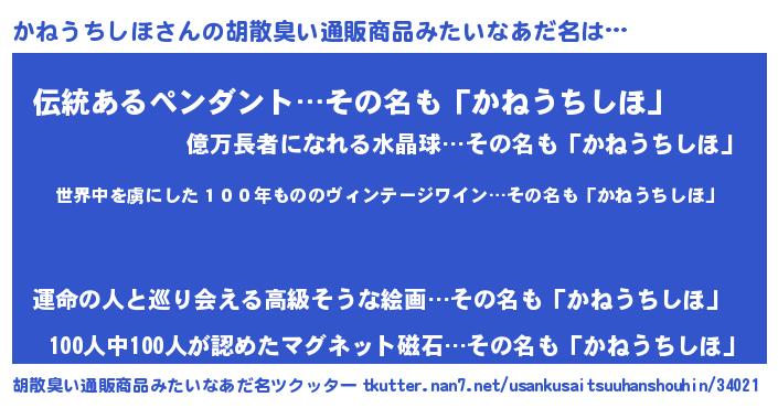 | 意味不明あだ名 | 『住所不定無職かねうちしほ(10歳)』 |