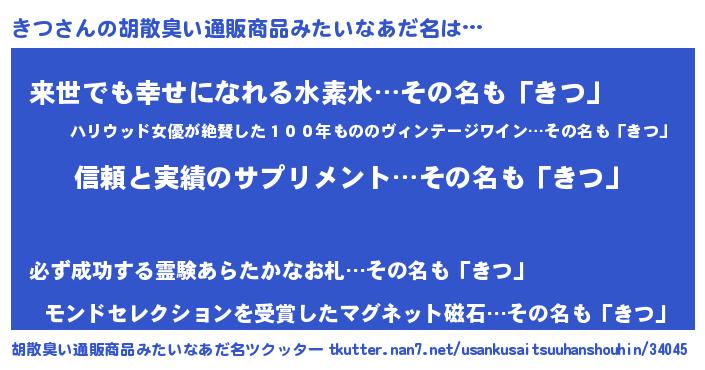 | 意味不明あだ名 | 『とにかく怪しいきつ』『永久保存きつ』 |